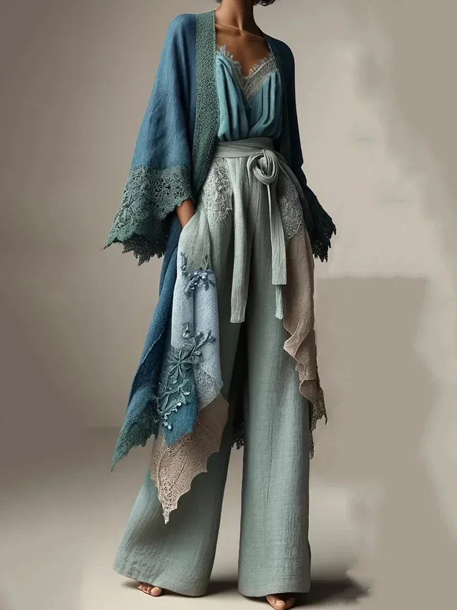 Fashionable Women's Trousers High Waist Solid Color Patchwork Overlay Lace-up Decoration Casual Loose Women's Wide Leg Pants