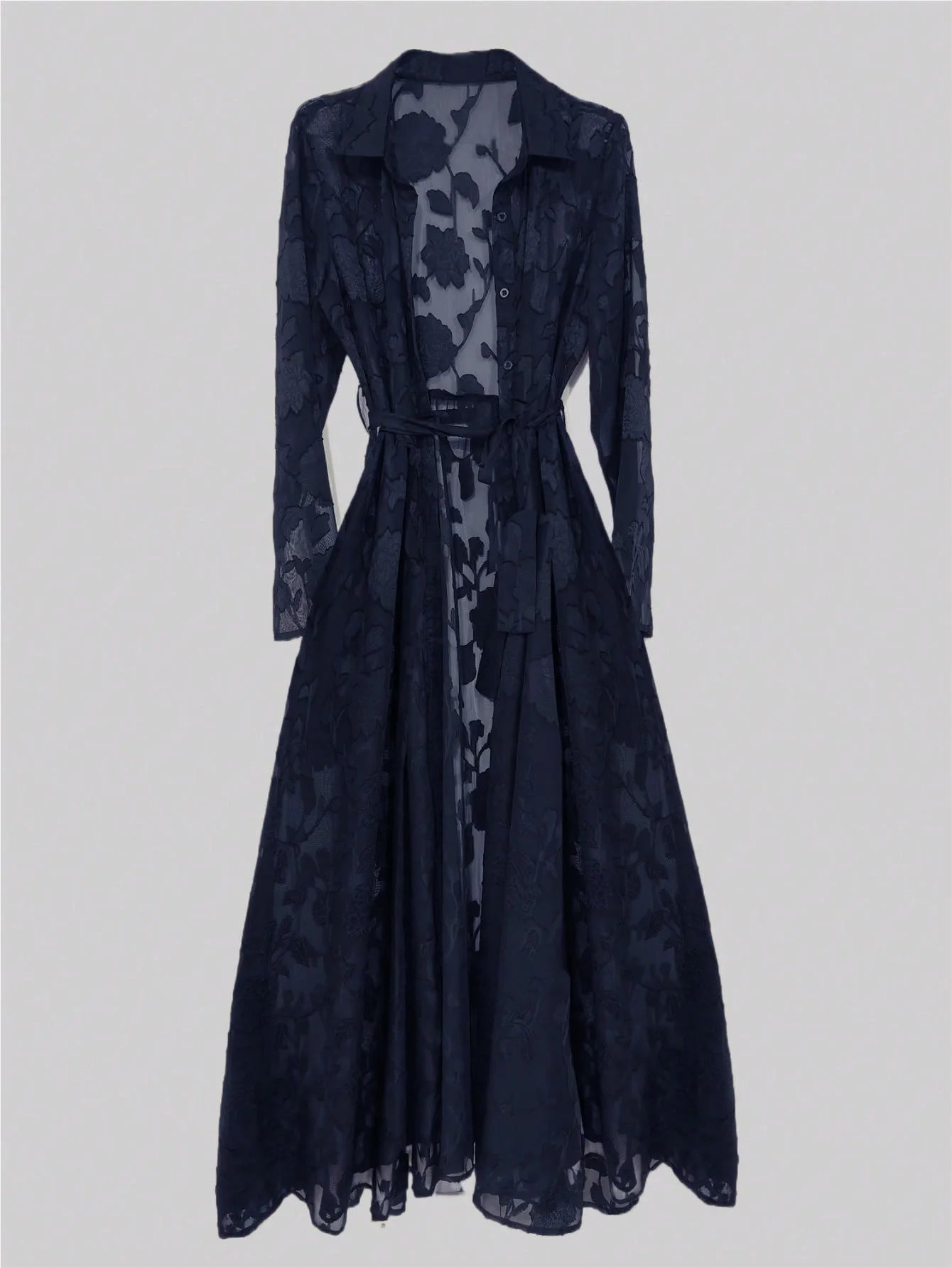 Summer Dress Women Jacquard Mesh Dress No Lining Transparent Club Party Sexy Knotted Waist Maxi Dresses Wholesale Dropshipping